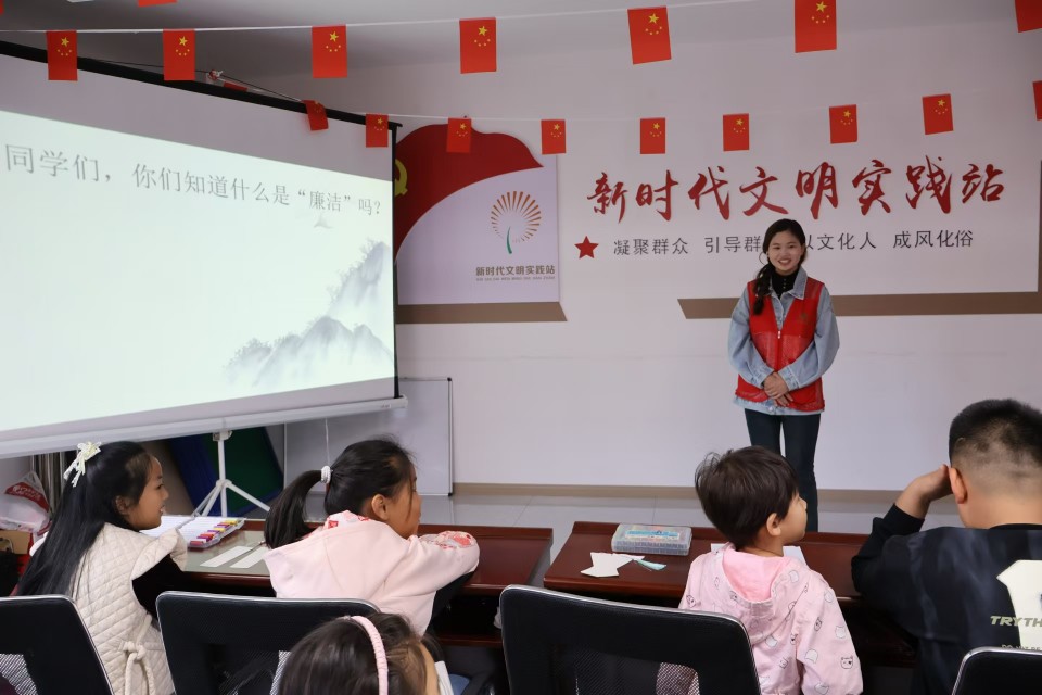 在廉政知识普及环节中,栾健指出,思想政治教育是一切工作的生命线,礼阳路社区一直将廉洁文化融入社区治理的全过程,在潜移默化中将廉洁清风吹入群众心中。随后,志愿者紧扣廉洁政治这一核心主题,向社区青少年讲解廉洁政治的相关知识,通过短片的形式展现廉洁与腐败的不同境遇,聚焦公职人员坚守廉洁底线的感人事迹,让孩子们切身感受到廉政之美。