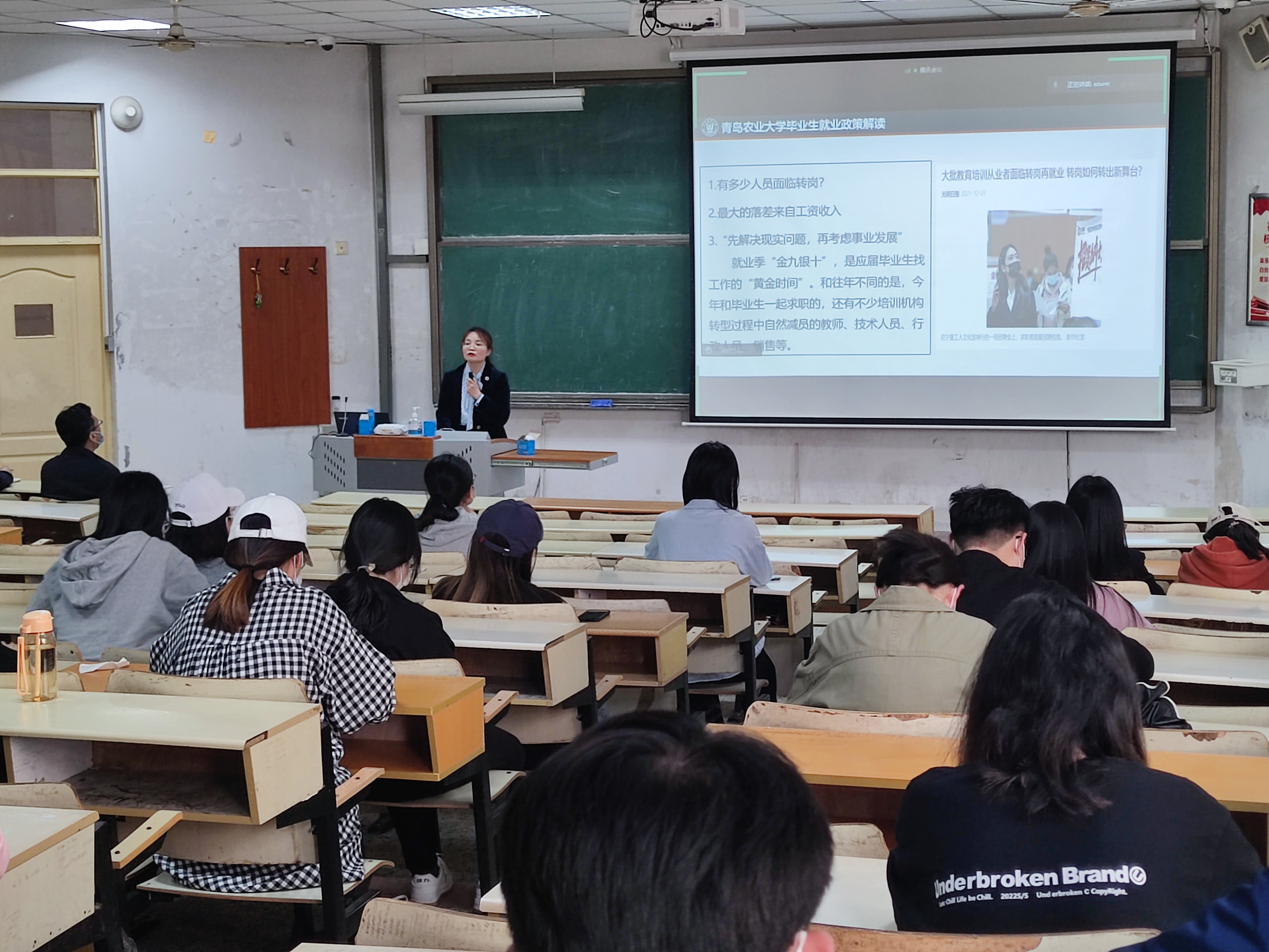 会上,吕国莹从当下就业形势、就业形式、就业时间和就业面临的问题切入,以疫情影响下就业大环境为背景,深度剖析2022届毕业生面临的就业压力与困难,通过案例分析的方式为毕业生解读就业政策,帮助其了解就业信息,动员毕业生先就业再择业。