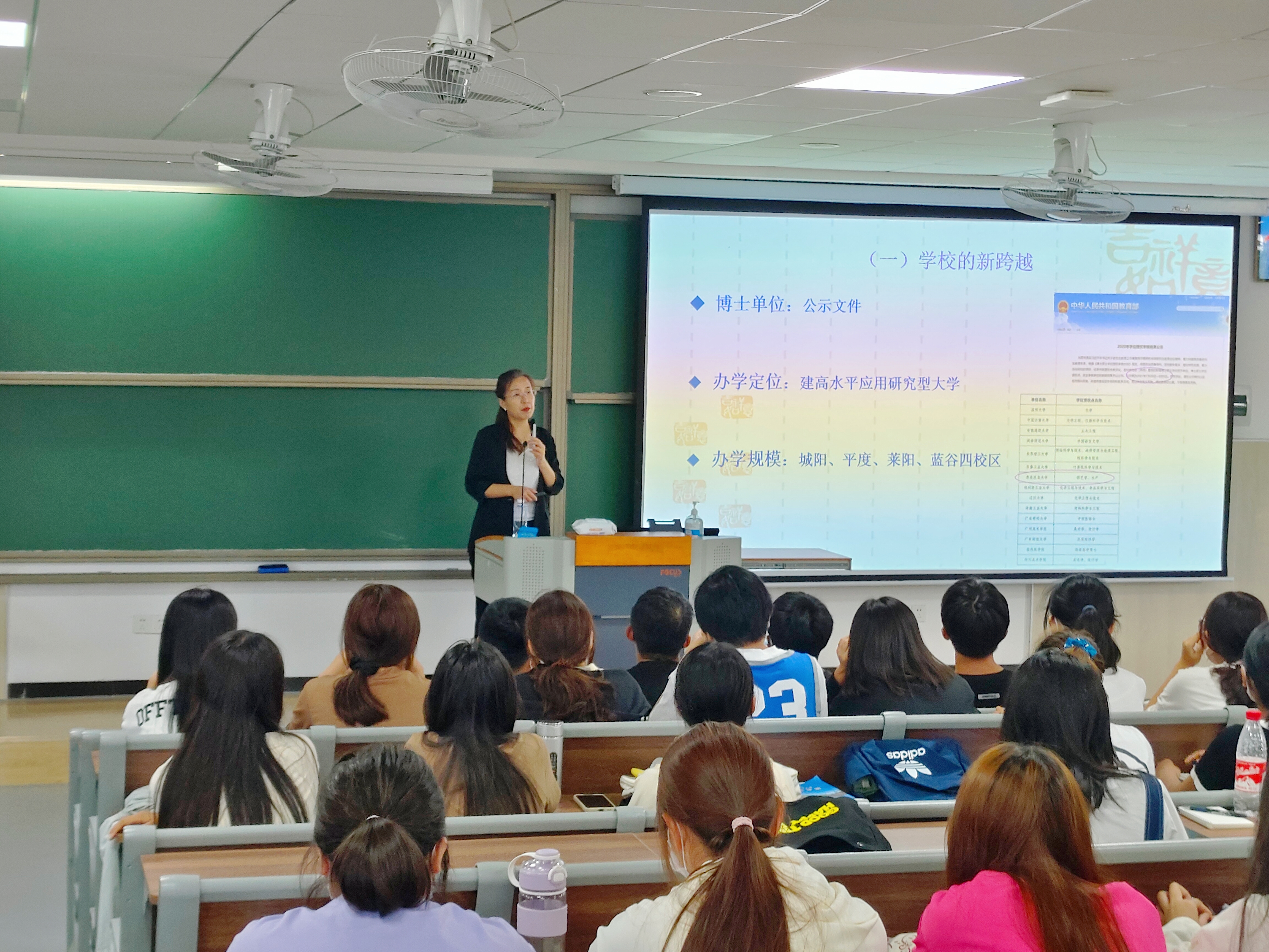 正是青岛好风景,初秋时节迎新生。蔡连卫从学校、学院与专业概况切入,详细介绍了近年来学校的新跨越、学院的新发展以及四个专业的新机遇。随后,她用详实的高考录取数据和真实的就业案例,让同学们认清当前的就业形势、确立明确的奋斗目标、树立正确的学习态度、了解基本的规章制度;同时又用生动的语言和典型的校友案例,激励同学们用功学习、努力奋斗,成长为优秀人才。蔡连卫寄语新同学,“希望人文社会科学学院四年的学习,是你人生的充实之旅、快乐之旅!只要你愿意付出努力与汗水,一定会不虚此行、此生无憾!”