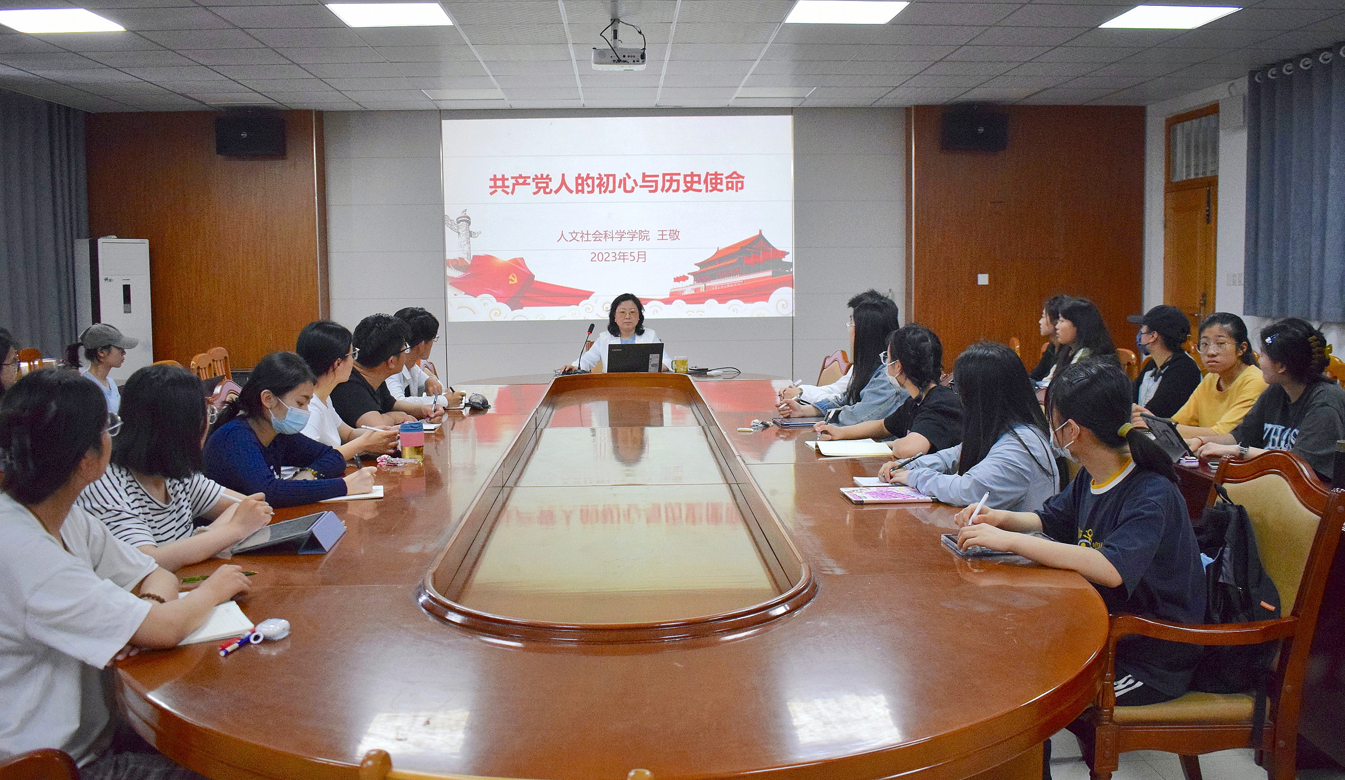 为深入学习贯彻习近平新时代中国特色社会主义思想主题教育,5月24日,人文社会科学学院党委副书记、副院长王敬以“共产党人的初心和历史使命”为题,为党员发展对象、入党积极分子讲授专题党课。