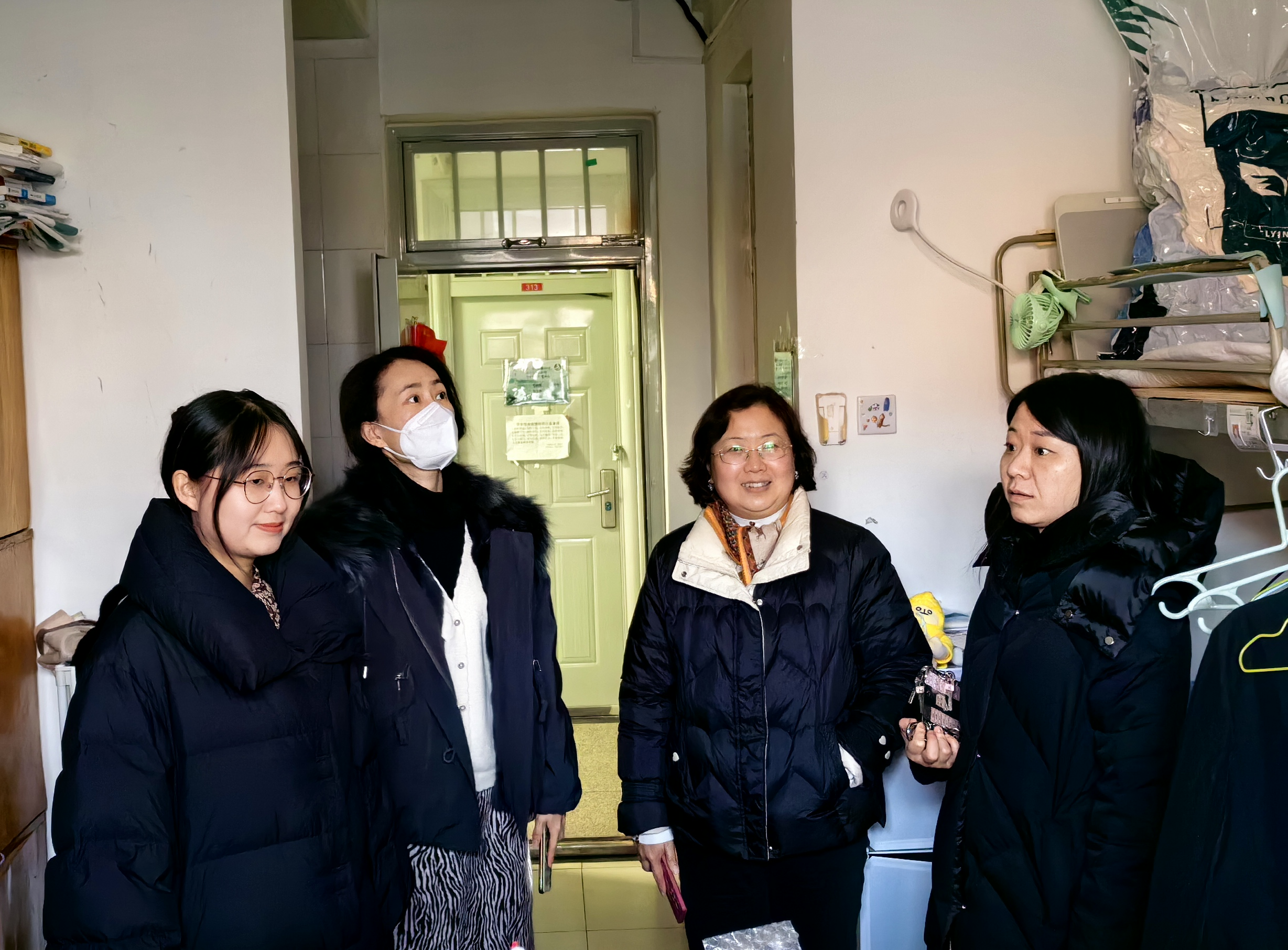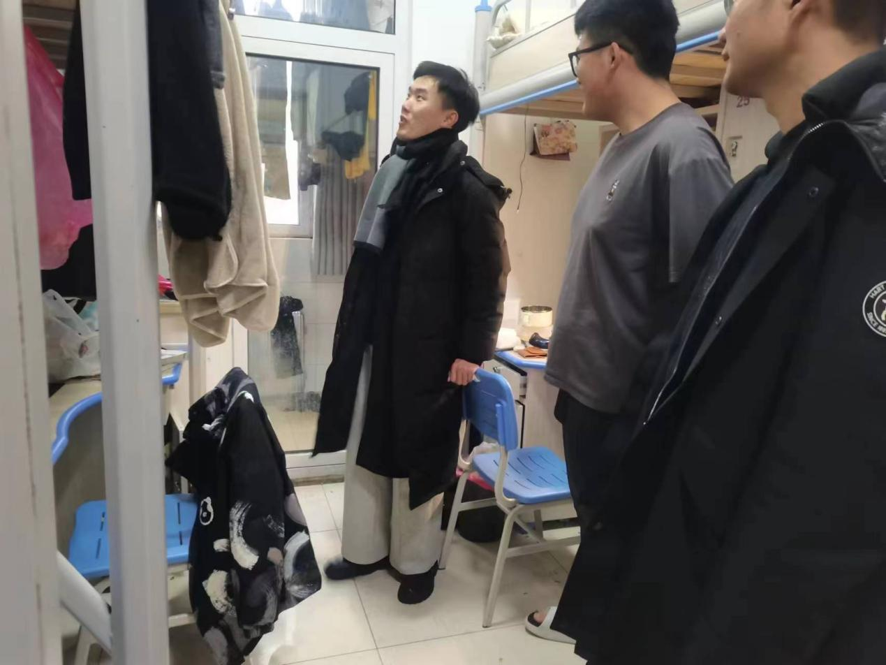 在宿舍走访过程中,学院领导老师仔细排查宿舍各类安全隐患,对学生宿舍硬件条件及生活状况进行询问,并着重强调了宿舍用电及室内公共设施设备方面的安全隐患问题,特别注意防火安全。王敬叮嘱未离校学生要提高安全防范意识,离校时关好门窗、水电,如遇到困难及时向辅导员、班主任反映。