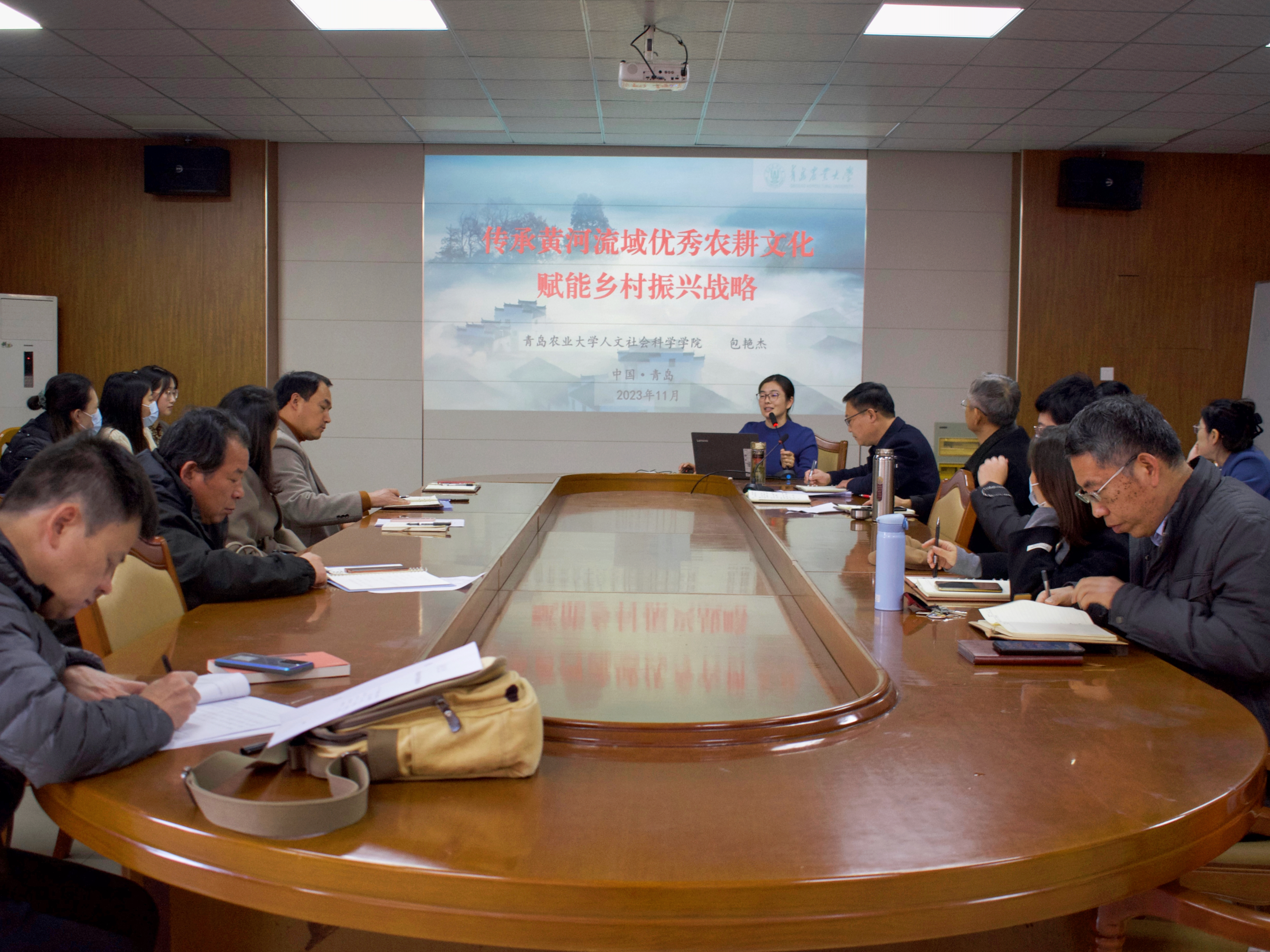 11月23日,欧洲杯买球官方官网召开教职工政治理论学习暨工作例会,邀请包艳杰老师作人文论坛讲座“传承黄河流域优秀农耕文化 赋能乡村振兴战略”。会议由学院党委书记徐以师主持,全体教职工参加。