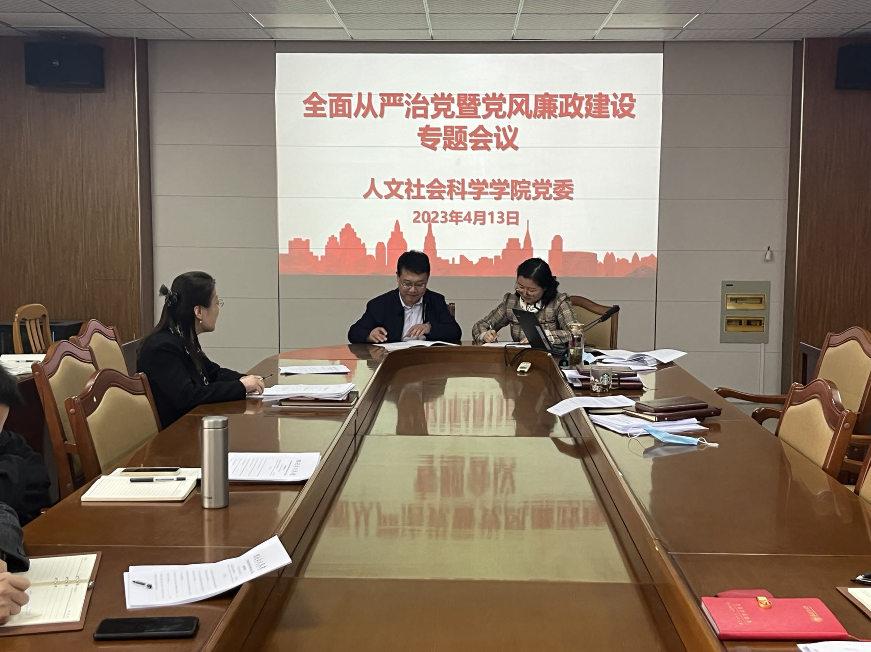 4月13日,欧洲杯买球app官网下载人文社会科学学院党委召开全面从严治党暨党风廉政建设专题会议,总结回顾学院党委2022年全面从严治党和党风廉政建设工作情况,部署今年工作任务。学院党委书记徐以师主持会议,全体委员参加会议。