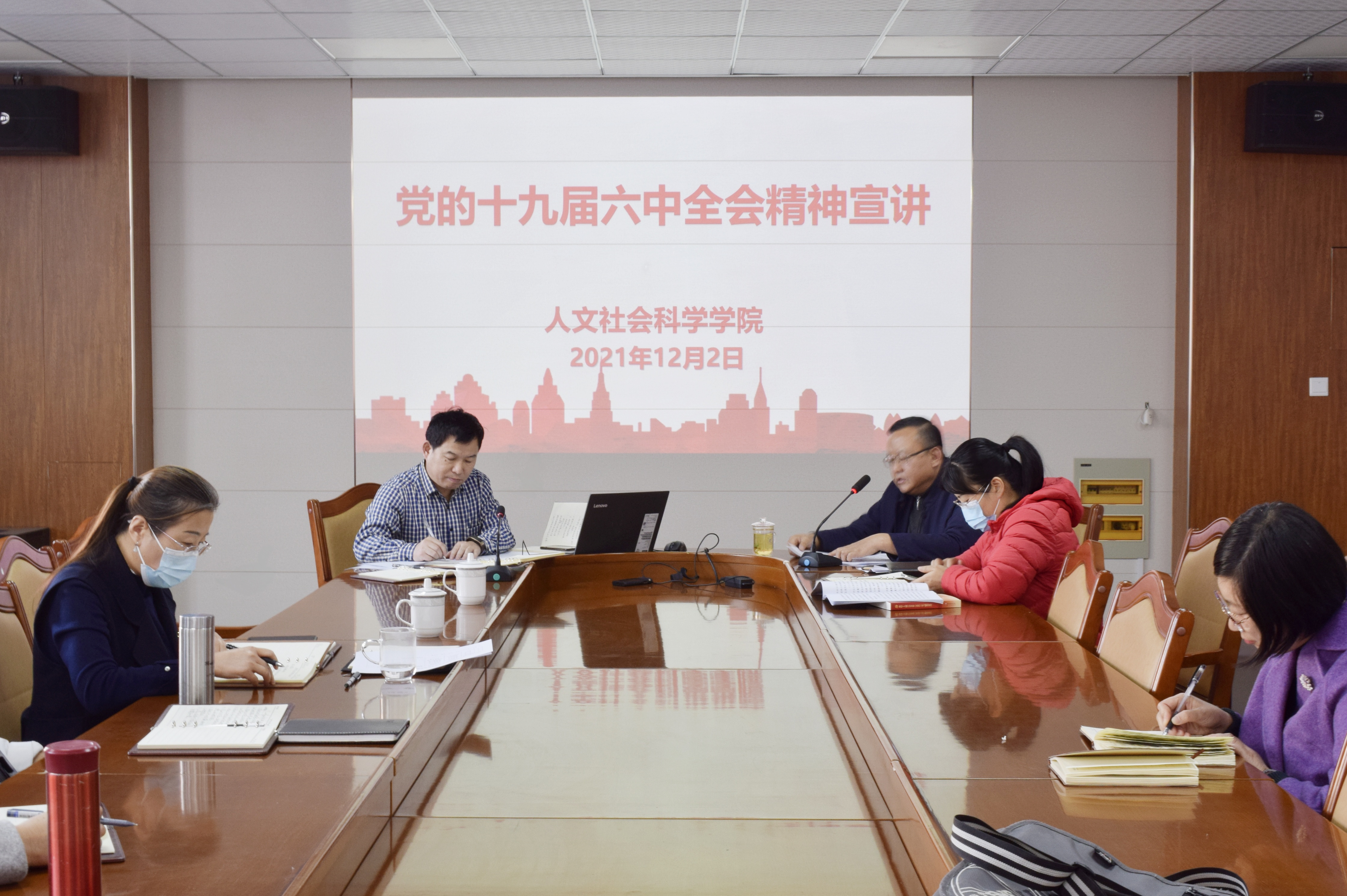 党的十九届六中全会召开以来,欧洲杯买球app官网下载人文社会科学学院党总支精心部署,扎实推进,通过理论中心组专题学习研讨、党员干部和师生专题学习、专家全面解读、全会精神专题宣讲等多种方式,多层次组织全体师生深入学习全会精神,努力推动全会精神入脑入心,学深悟透,学以致用。