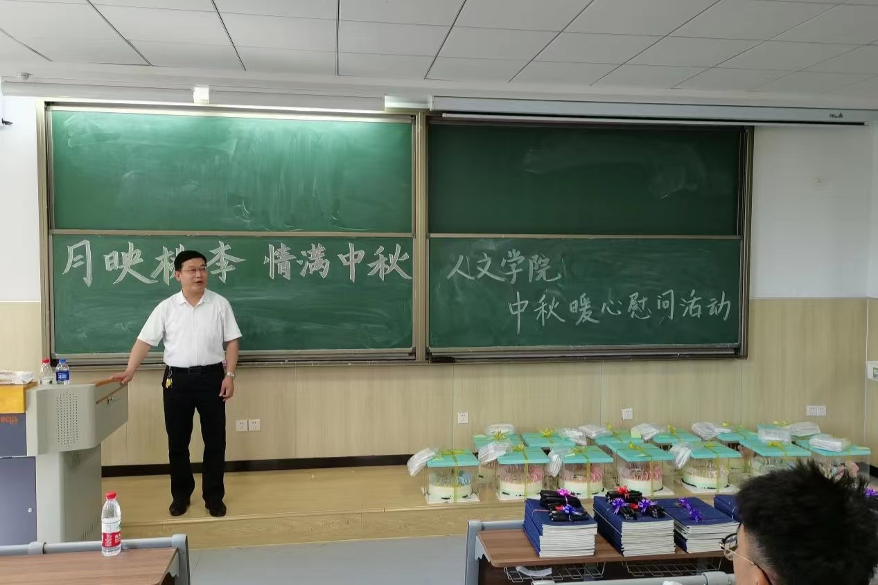 平度校区举办“月映桃李 情满中秋 人文社会科学学院中秋暖心慰问活动”,徐以师寄语新同学:中秋佳节来临之际,希望同学们不仅要有露从今夜白、月是故乡明的乡思愁绪,海上生明月、天涯共此时的节日感慨,月上柳梢头、人约黄昏后的青春浪漫;也要有明月几时有,把酒问青天的人生豪迈;但愿人长久,千里共婵娟的家国情怀;更要有天上一轮才捧出,人间万姓仰头看的远大志向。祝大家节日快乐、心想事成、万事如意。学院为同学们送上团圆蛋糕、印有院徽院训的笔记本和写字笔,老师们亲切慰问初入大学的新生同学,叮嘱同学们提高防疫意识,尽快适应大学生活。