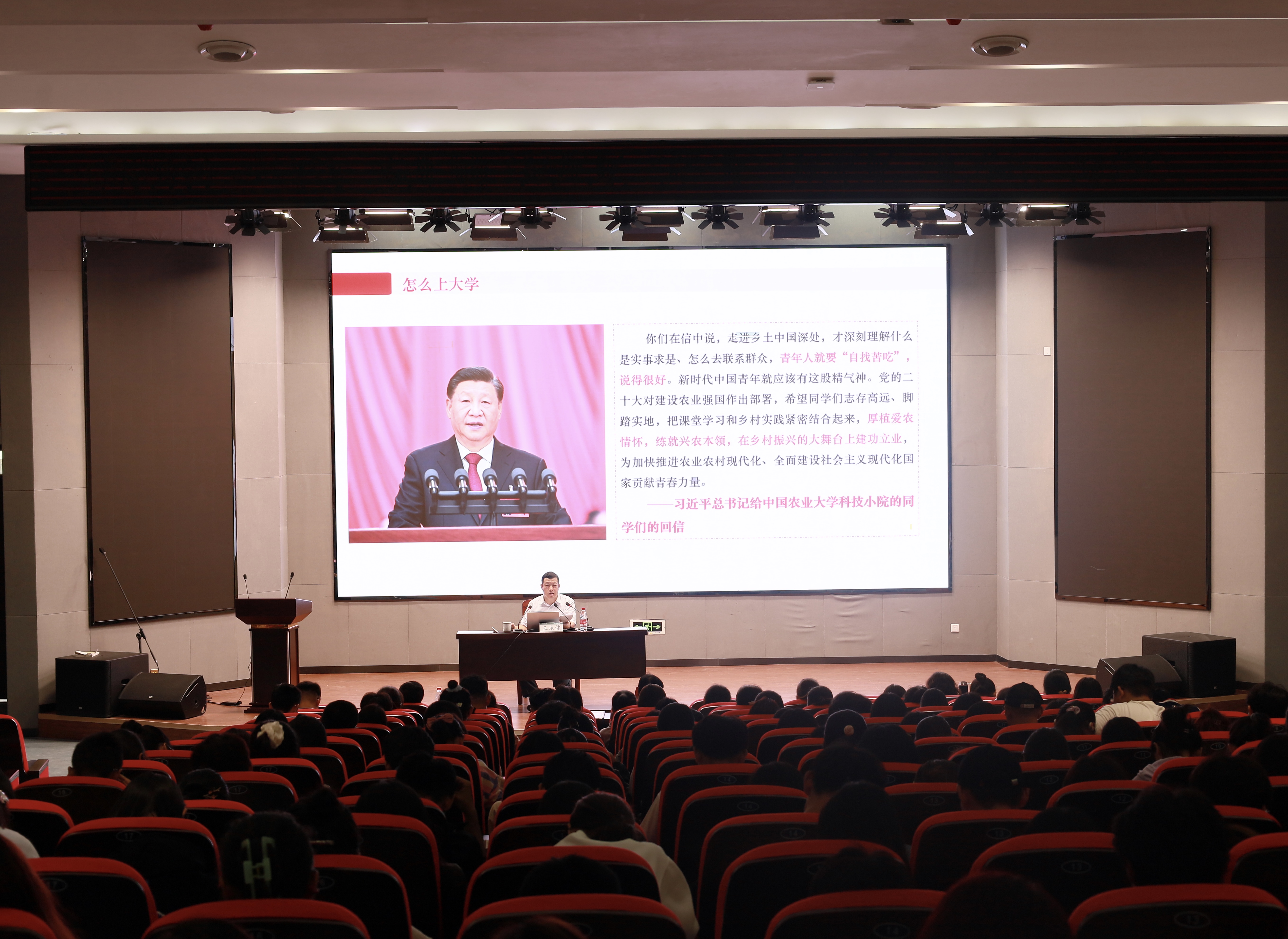 9月26日,欧洲杯买球app官网下载党委委员、副校长王永健为人文社会科学学院、海洋科学与工程学院2023级本科生讲授“开学第一课”。会议由人文社会科学学院党委书记徐以师主持,海洋科学与工程学院党委书记张国利、人文社会科学学院党委副书记、副院长王敬出席。