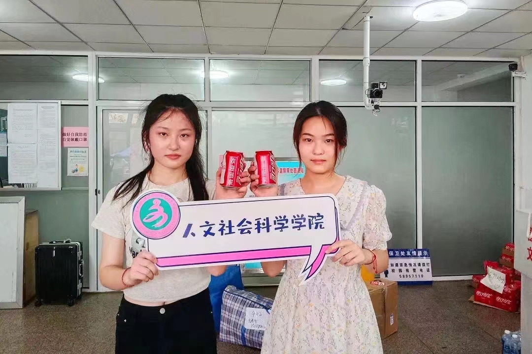 “贴心小礼物,浓浓人文情”。为促进搬迁工作顺利进行,表达对2021级同学的欢迎之情,学院为同学们购置了编织袋、记号笔、胶带、绑绳等搬迁用品,并在炎炎夏日为同学们准备了印有“人文 欢迎回家”字样的可乐和印有“人文你好”等字样的手牌供同学们消渴解暑、拍照留念。