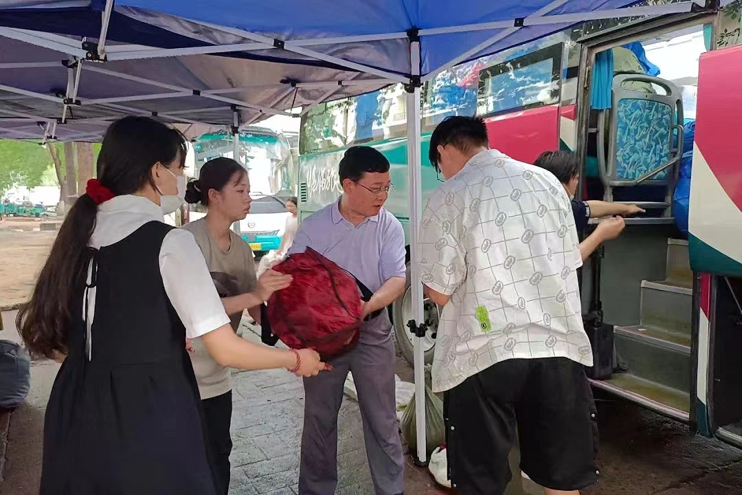 “学生为根本,深厚师生情”。6月27日,校党委副书记单连岱、学生工作处处长王峰走访慰问学院2021级学生,听取学生意见建议,表达了学校的关怀。6月27日至28日,学院领导班子现场指挥搬迁工作,党总支书记徐以师,副书记、副院长王敬参与跟车、行李装卸,及时协调解决临时出现的各类问题。全体辅导员、班主任亲自上阵,分布在两个校区,维持现场秩序,组织学生装卸行李。