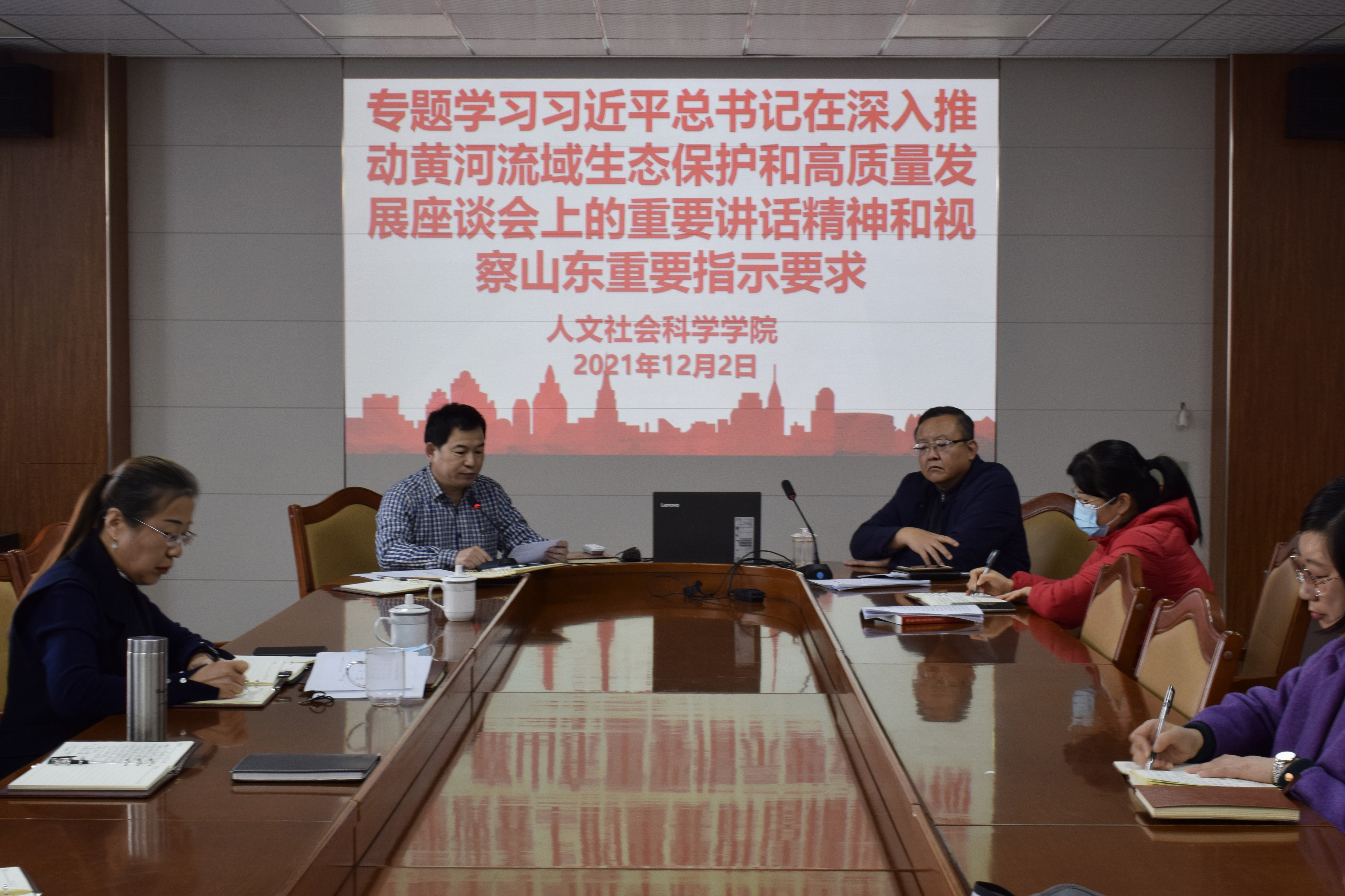 12月2日,欧洲杯买球app官网下载人文社会科学学院就“习近平总书记在深入推动黄河流域生态保护及高质量发展座谈会上的重要讲话精神和视察山东重要指示要求”开展专题学习。会议由院长王效仿主持,全体教职工参会。
