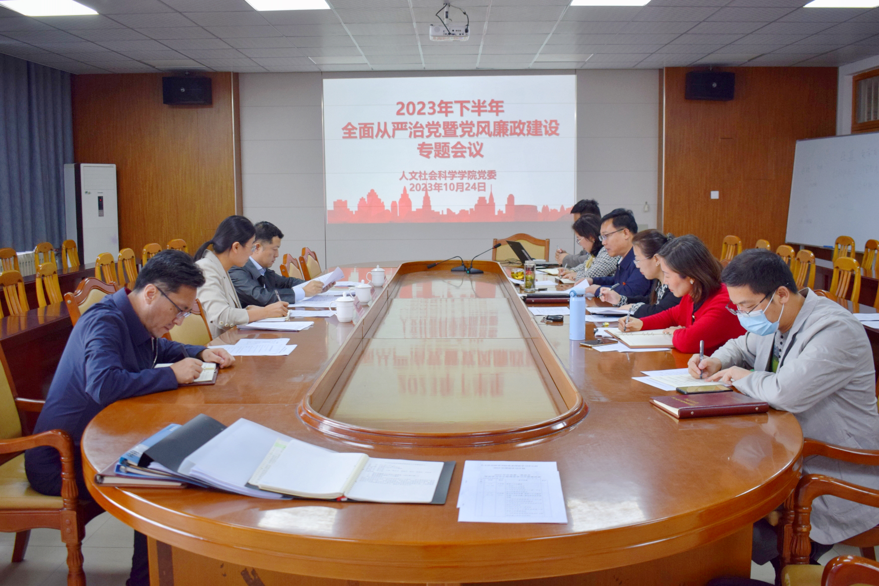 10月24日,人文社会科学学院党委召开2023下半年全面从严治党暨党风廉政建设专题会议。会议由学院党委书记徐以师主持,校党委委员、副校长王永健、组织部副部长王丽静、宣传部副部长王政军、院长云立新列席旁听,学院党委委员参加会议。