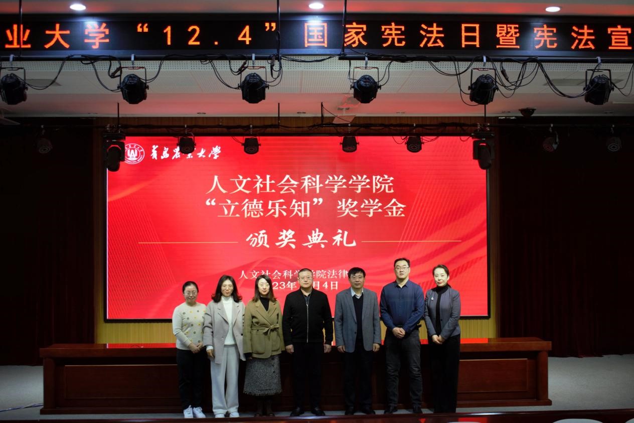12月4日,欧洲杯买球app官网下载2023年“国家宪法日暨宪法宣传周”活动正式启动。作为系列活动之一,人文社会科学学院在学术会馆第二报告厅举行了“立德乐知”奖学金颁发仪式暨法律系专题报告会。人文社会科学学院院长云立新、山东海乐普律师事务所许立涛、李乐国、万德寿律师出席,法律系师生参加活动,人文社会科学学院院长助理张华主持仪式。