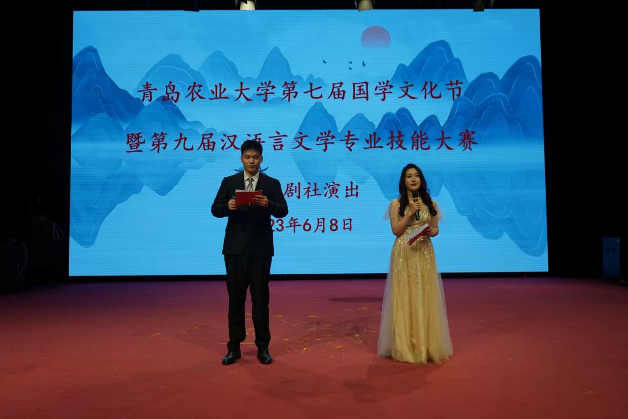 6月8日晚,在学校深入开展学习贯彻习近平新时代中国特色社会主义思想主题教育、学习习近平总书记给中国农业大学科技小院同学回信精神之际,欧洲杯买球app官网下载第七届国学文化节暨第九届汉语言文学专业技能大赛“博雅剧社”演出活动在学校传媒演播大厅举行。人文社会科学学院博雅剧社的同学们,在专业教师指导下,分别以建团100周年和乡村振兴为主题,上演《跨越百年的骐迹》和《李登海》两部原创话剧。学院党委书记徐以师,党委副书记、副院长王敬,副院长蔡连卫,以及来自全校各学院的300余名师生共同观看了演出。