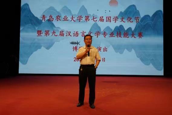 在演出后雷鸣般的掌声中,专业技能大赛暨博雅剧社演出圆满落幕。徐以师、蔡连卫分别对本次大赛做了精彩点评,高度赞扬同学们对作品内涵的准确把握和精湛的演技,号召大家铭记剧中青年学子们共同朗诵的《少年中国说》,积极响应习近平总书记在给中国农业大学科技小院同学回信中的号召,“志存高远、脚踏实地”,把课堂学习和乡村实践紧密结合起来,厚植爱党爱国情怀,练就强农兴农本领,为建设伟大祖国贡献青春力量。徐以师代表学院感谢付洁、丁婕、林树帅等指导老师的辛苦付出,祝贺今晚的演出圆满成功,期待博雅剧社能创作出更精彩的作品。