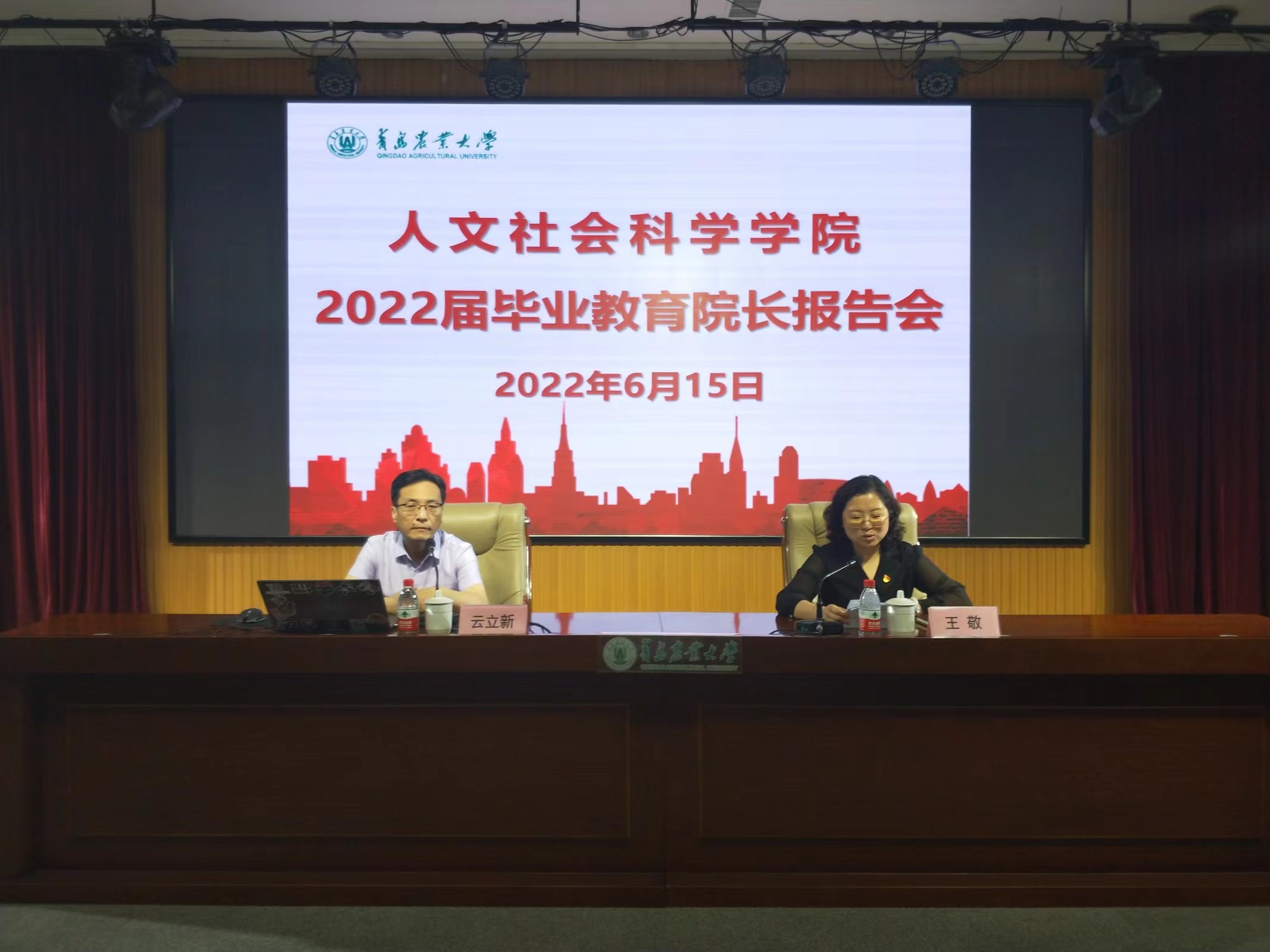 6月15日,欧洲杯买球app官网下载人文社会科学学院院长云立新在学术会馆为2022届毕业生作毕业教育报告。本次会议由党总支副书记、副院长王敬主持,2022届全体毕业生参加会议。