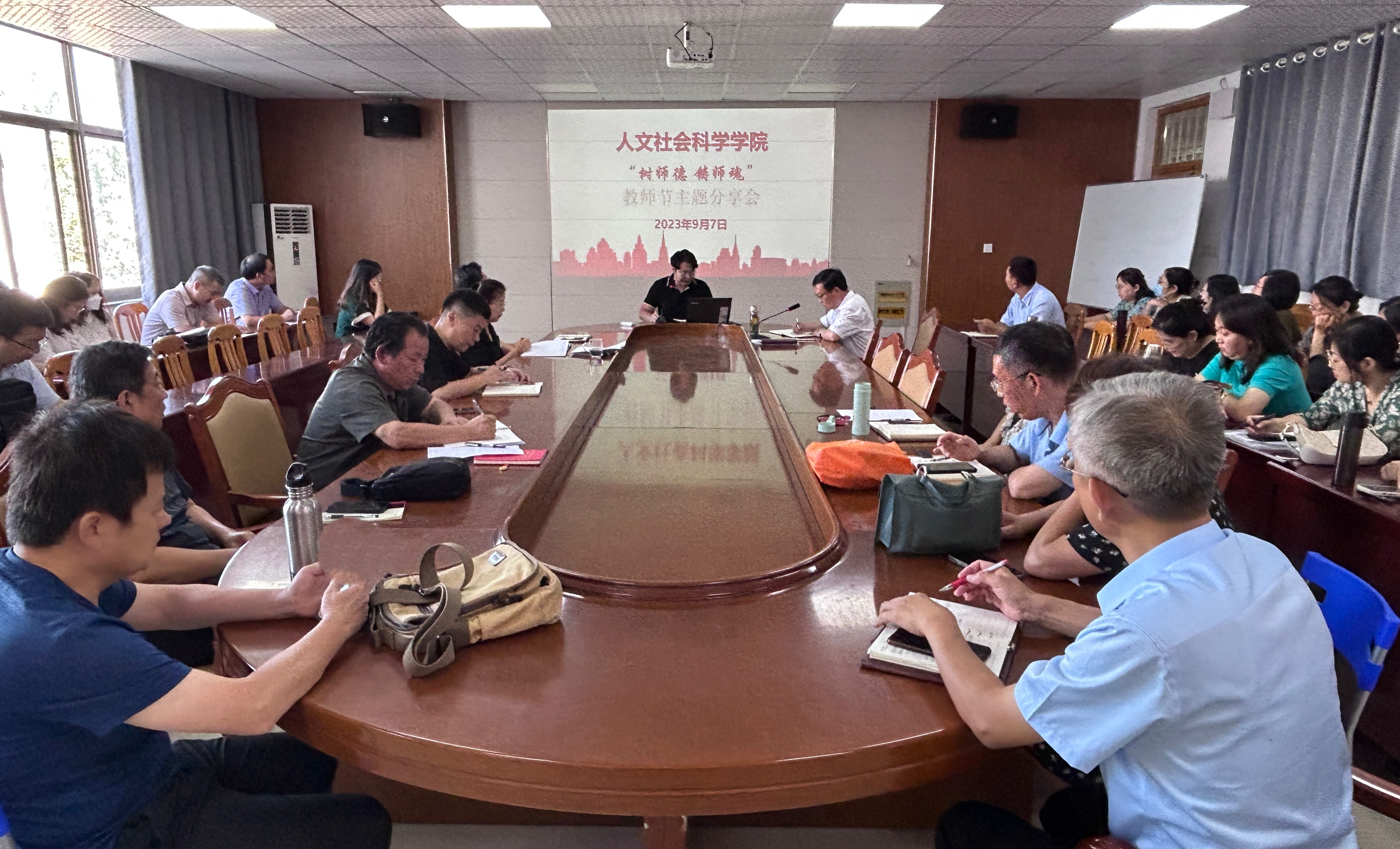 9月7日,在教师节到来之际,欧洲杯买球官方官网召开“树师德 铸师魂”教师节主题分享会。会议由学院工会胡述耀老师主持,全体教职工参加。