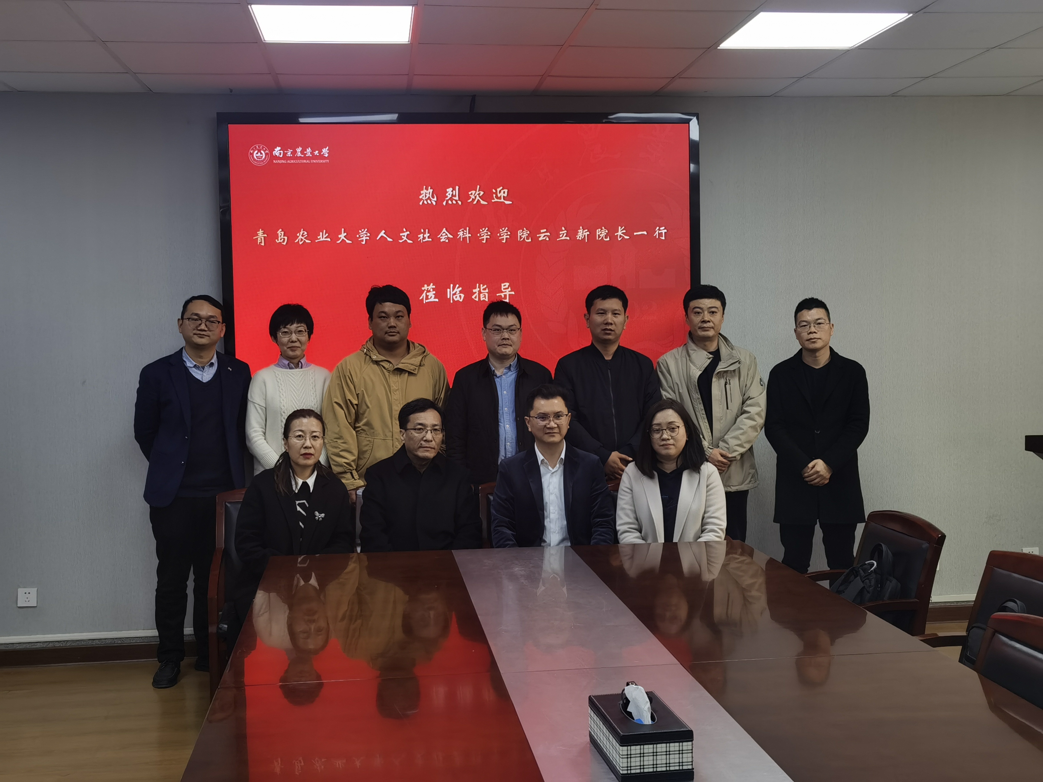 在南京农业大学人文与社会发展学院,学院党委书记李日葵代表卢勇院长对我院一行的来访表示热烈欢迎,并介绍了学院的办学历史、学科特色、发展成效,戚晓明副院长介绍了在加强本科专业建设、深化教育教学改革等方面的具体举措及成果。云立新院长介绍了我院的办学与发展状况,双方就当前农业院校人文社科专业建设的重点难点问题、系办专业的管理方式方法、专业建设路径以及乡村振兴相关工作等进行了深入交流,并就联合开展培训工作达成了初步合作意向。