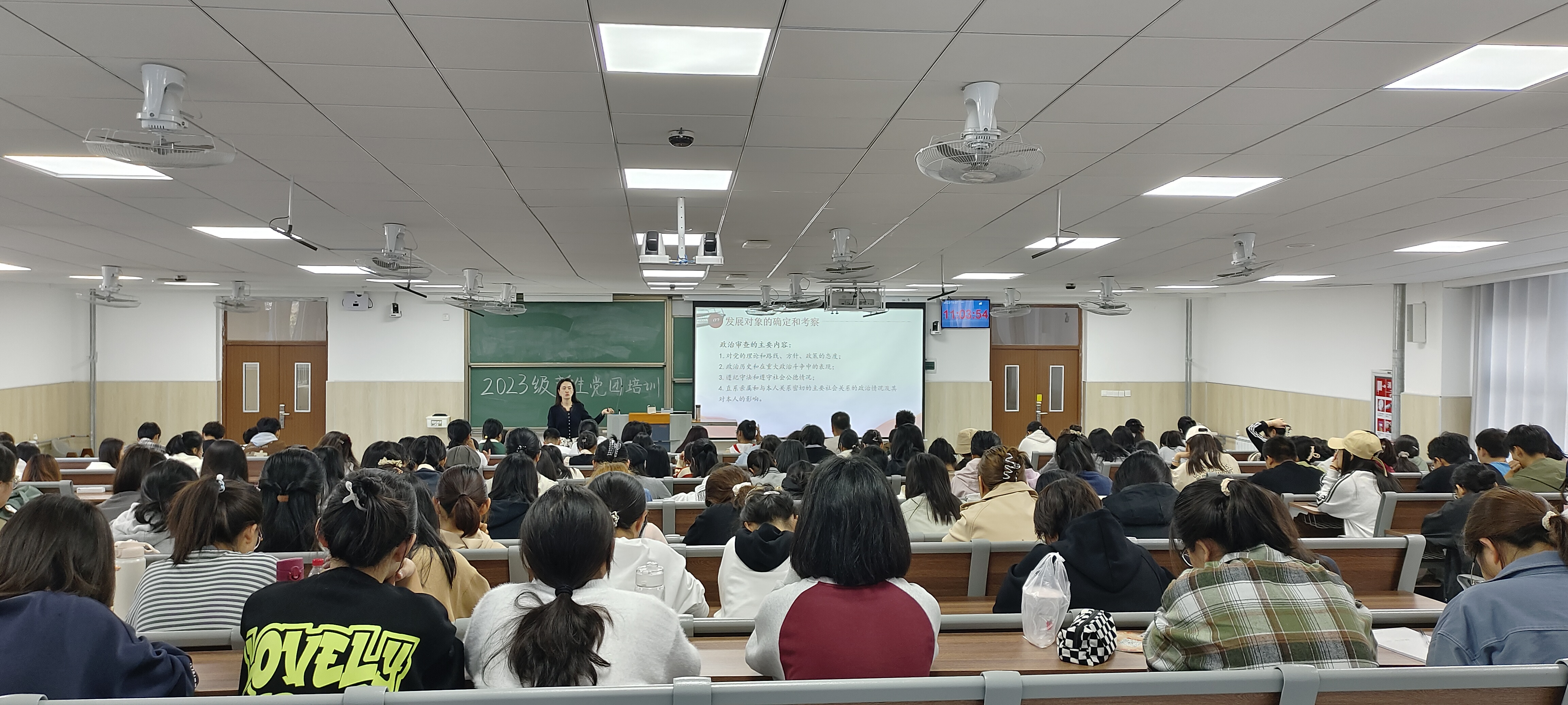 10月31日上午,人文社会科学学院于平度校区博学楼A213举行2023级新生党团培训,副科级辅导员毛凯梅为2023级新生讲解发展团员和党员基本流程,学院2023级新生参加培训。