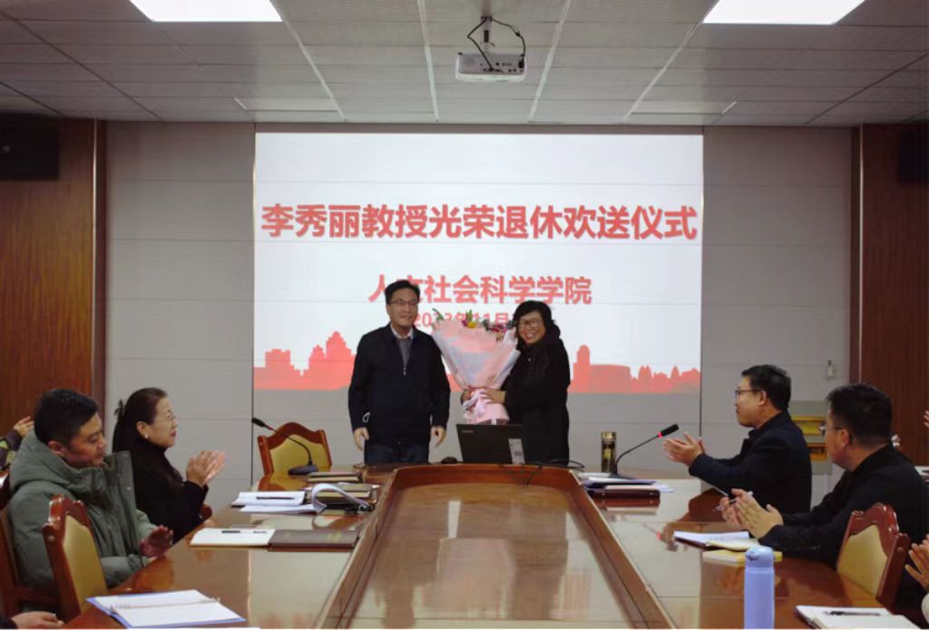 随后,学院举行了李秀丽教授光荣退休欢送仪式。院长云立新代表学院为李秀丽教授送上鲜花和纪念品。李秀丽发表退休感言,回顾了在学校学工作、学习、生活的点点滴滴,对领导同事多年以来的关心与支持表示感谢,对学校、学院的发展送上美好祝愿。