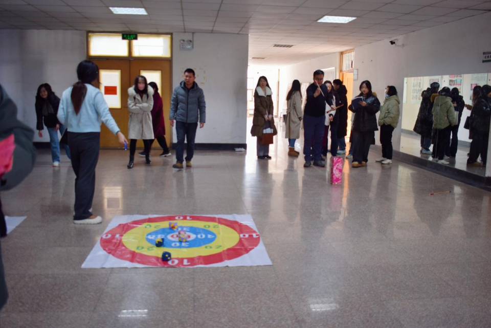 本次庆元旦活动共设置了投壶、孤胆英雄、幸运丢丢丢、猜字谜、你画我猜五个项目,运动会在一片欢声笑语中有序开展。无论是在投壶项目中展现出的精准技艺,还是在乒乓球托球跑中体现出的速度与灵活,都充分彰显了老师们的活力,沙包打靶和猜字谜项目更是趣味横生。老师们在运动中放松身心,在游戏中尽享欢乐,用愉悦和欢笑驱散严冬的寒冷。各项比赛结束后,根据老师们的积分颁发奖品。
