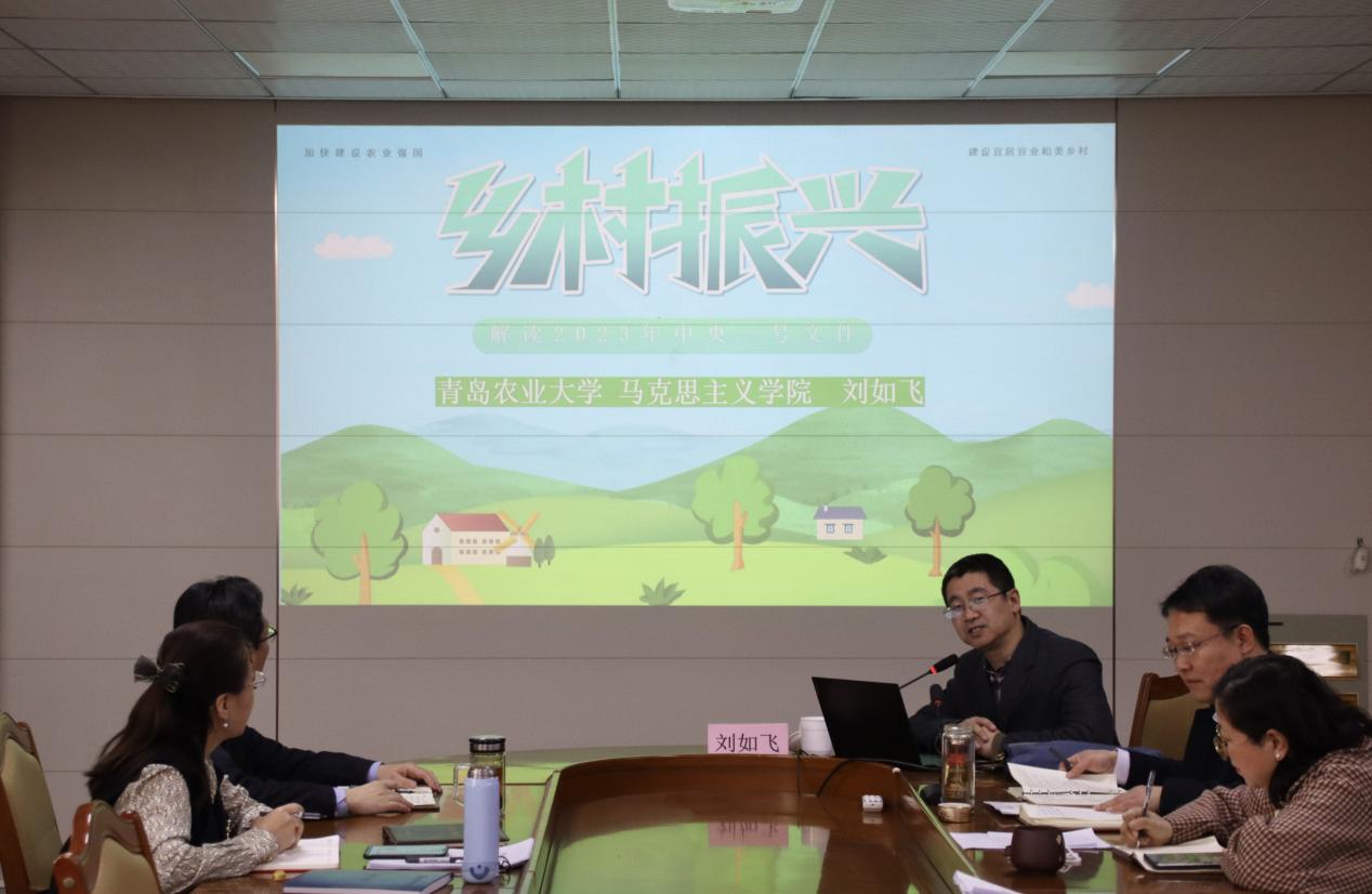 3月16日,人文社会科学学院邀请马克思主义学院刘如飞副教授为全体教职工作2023年中央一号文件学习辅导报告会。会议由学院党委书记徐以师主持,全体教职工参加。