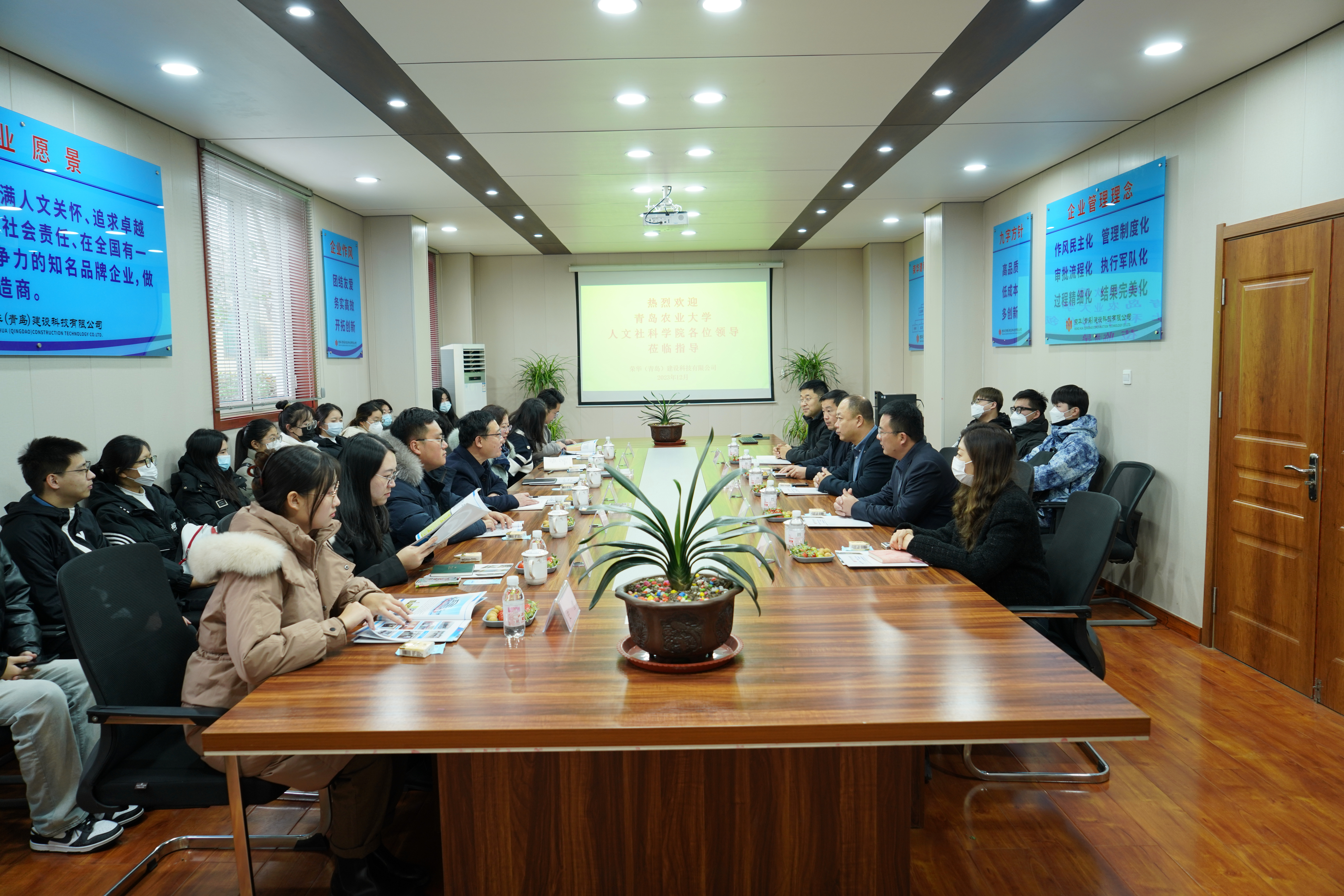 12月12日,人文学院师生赴青岛中德生态园走访用人单位。学院党委书记徐以师、党委副书记、副院长王敬及学院各系主任、辅导员、学生代表先后走访了荣华(青岛)建设科技有限公司、中德生态园被动房建筑科技有限公司、青岛礼贤学校,就实习就业、党建共建、创新创业等事宜进行友好交流。