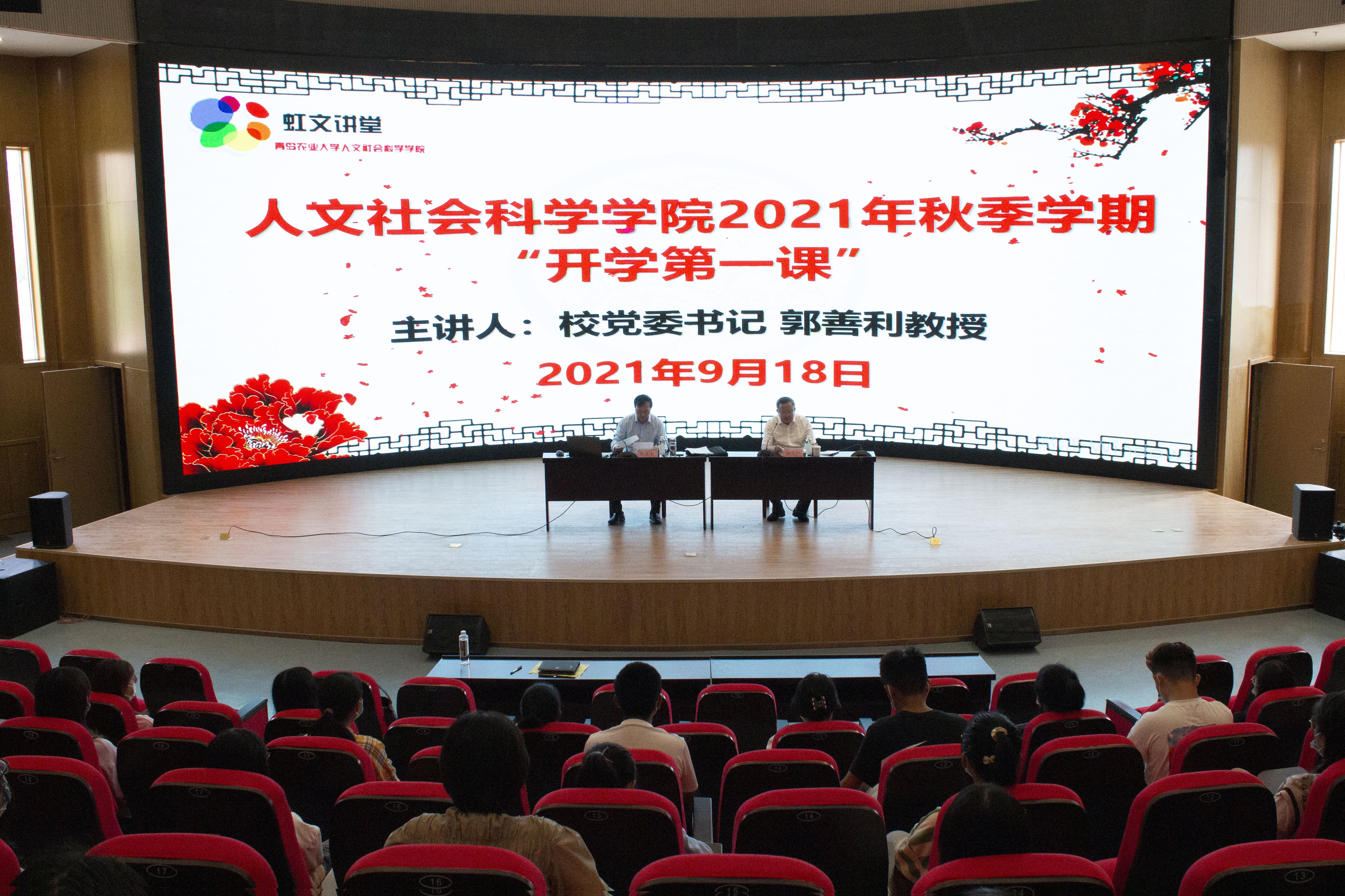 9月18日上午,欧洲杯买球app官网下载人文社会科学学院2021级新生开学第一课在平度校区明德楼报告厅举行,校党委书记郭善利以《青春向党 ,强国有我》为题为2021级新生上开学第一课。学院部分教师及2021级新生参加了第一课学习。第一课由学院党总支书记祝茂凯主持。