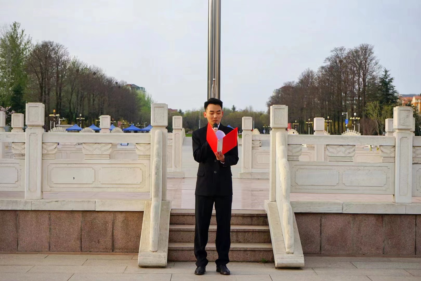 学生代表张箫萌以“缅怀先烈,砥砺前行”为题在国旗下演讲。他从过去、当下、未来三个维度阐明了新时代青年应有的民族意识和澎湃斗志,鼓励青年学子从现在做起,从日常做起,增长自身本领才干,继承优良传统文化,呼吁同学们从缅怀先烈中汲取能量,为社会主义现代化建设贡献力量。