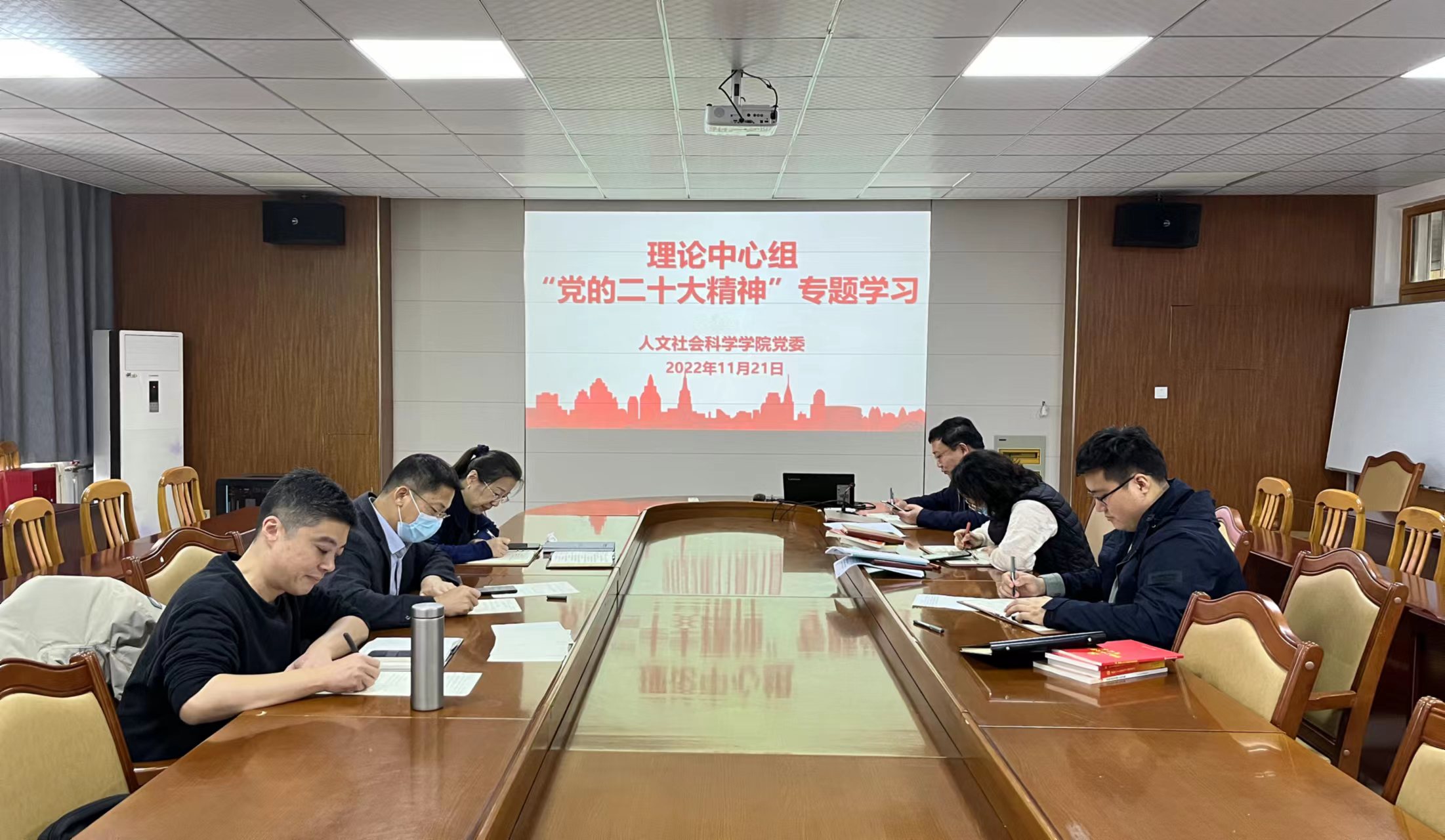 11月21日,欧洲杯买球app官网下载人文社会科学学院党委理论学习中心组集体学习党的二十大精神及党章修正案。会议由党委书记徐以师主持,院党委理论学习中心组成员参加会议。