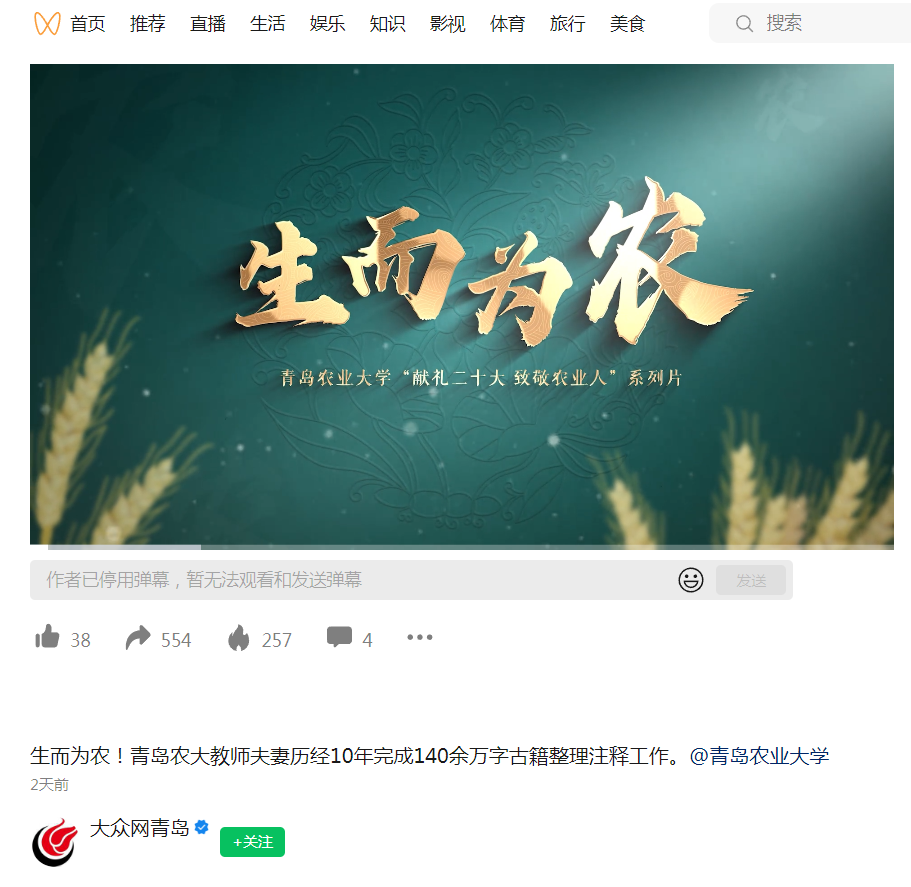 大众网:生而为农!青岛农大教师夫妻历经10年完成140余万字古籍整理注释工作