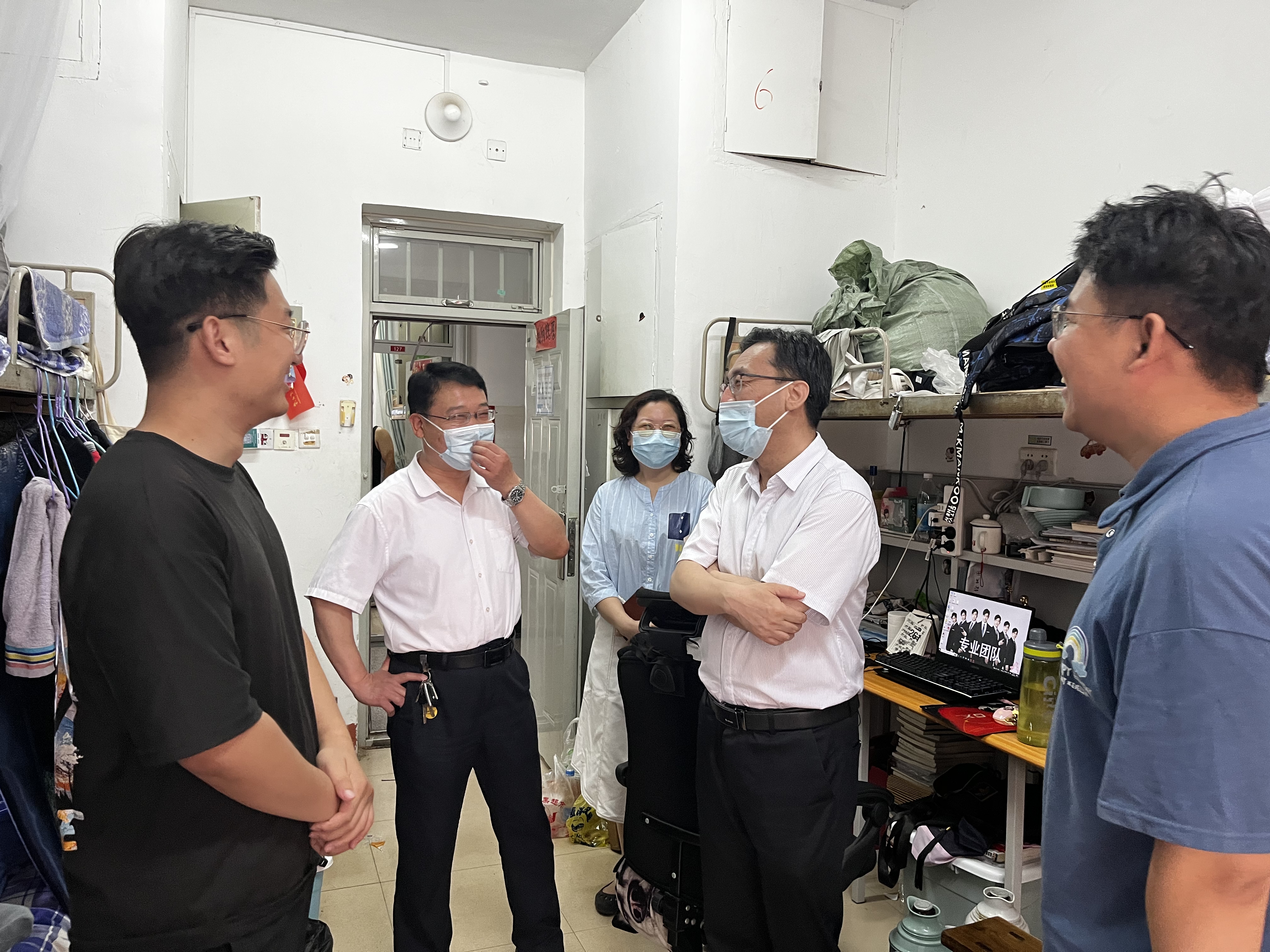 6月16日,欧洲杯买球app官网下载人文社会科学学院党总支书记徐以师、院长云立新、党总支副书记、副院长王敬走访学院毕业生宿舍,对毕业生表达关怀与慰问。
